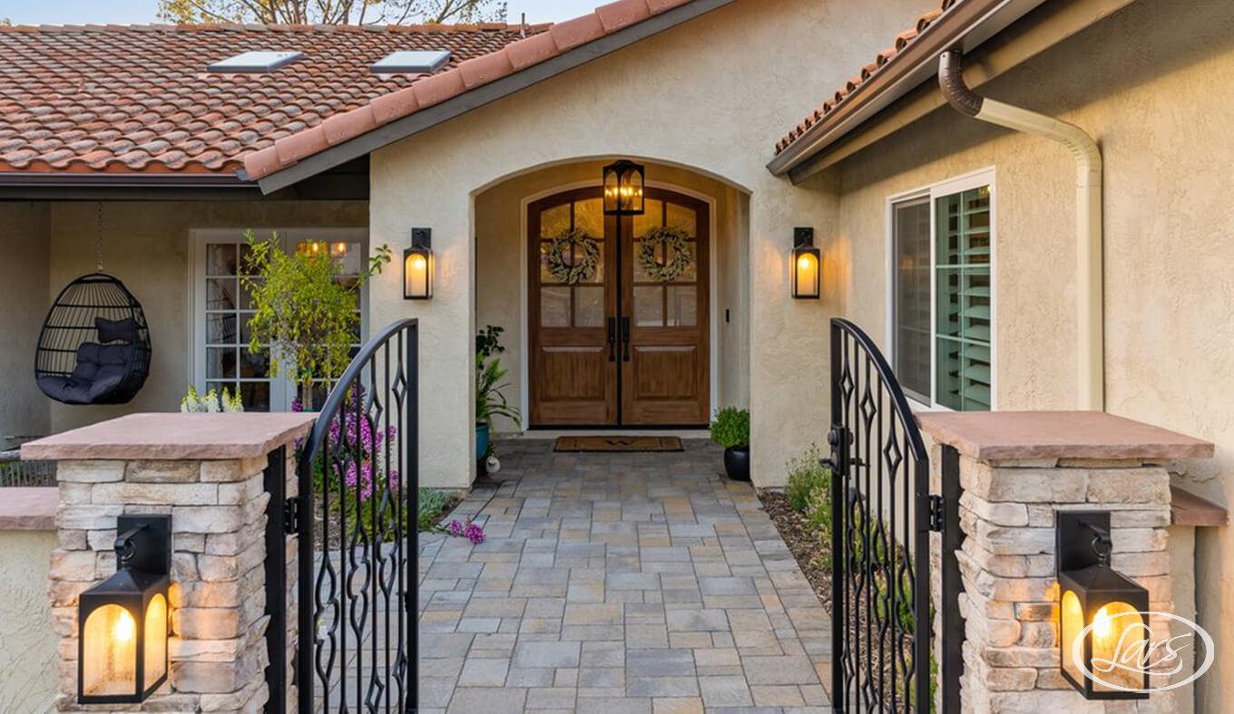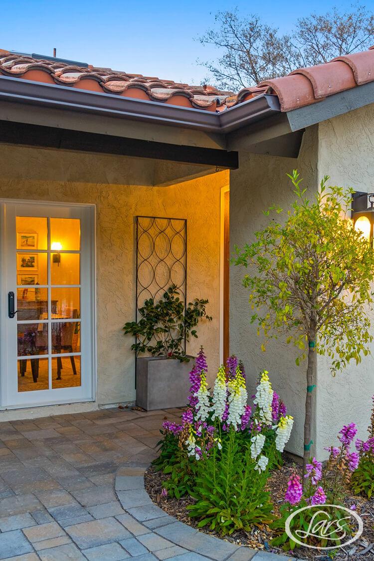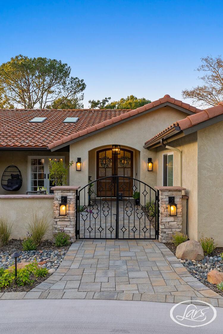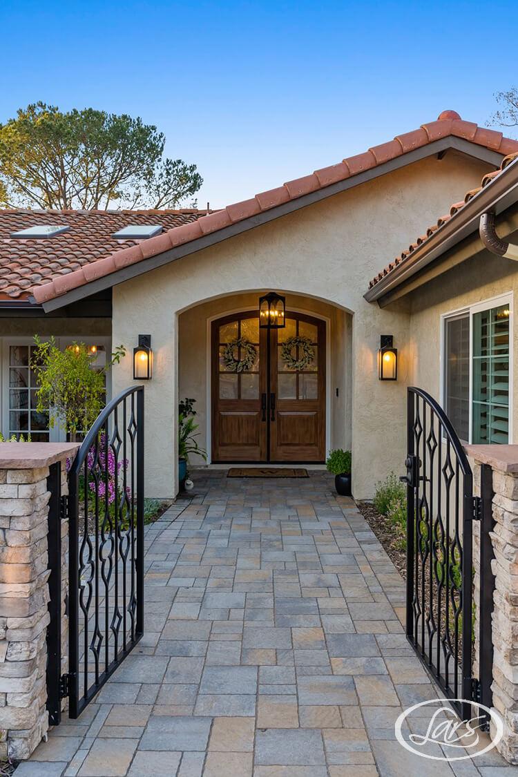 This front yard addition reimagines curb appeal through a Modern Spanish lens. The smooth stucco in warm neutral tones sets the foundation, accented by a newly built archway and wooden front doors that nod to classic Spanish architecture. Crisp modern lines are softened with natural textures like stone and clay. The redesigned walkway and courtyard entry create a welcoming flow, while drought-tolerant landscaping completes the look with layered greenery and accents. This exterior blends timeless character with updated simplicity which shows that an addition can completely transform a home’s presence from the street.